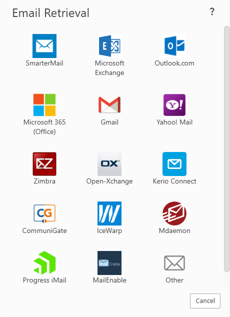 A retrieval task connects SmarterMail to an external mail account and pulls messages from it into your inbox.