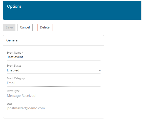 Give your event a descriptive Name so it’s easy to identify later (e.g. “Alert: Storage Nearly Full”, “Notify: Failed Login”).