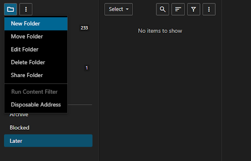 Folders help you organize your emails by grouping related messages together. You can create as many folders as you need, rename them to stay organized, and move emails into them to keep your inbox clean.