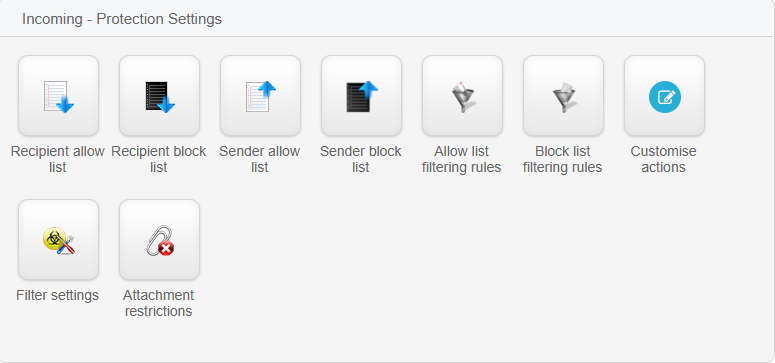 Navigate to Incoming - Protection Settings > Attachment restrictions from the dashboard.